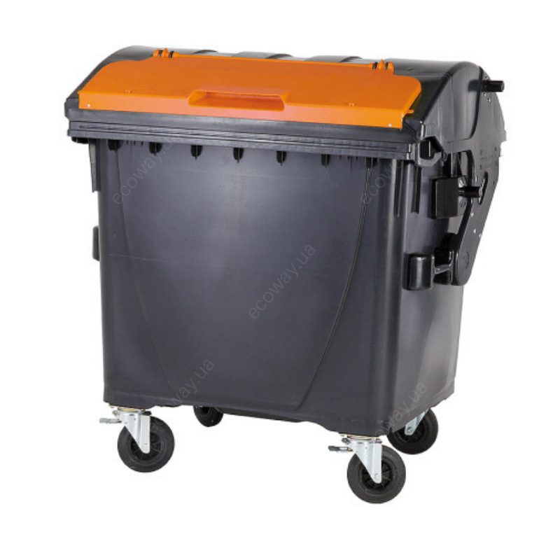 Опис Пластиковий контейнер 1100 л, К/К, чорна/помаранчева кришка